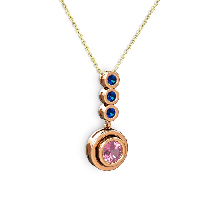 Pembe kuvars ve lab safir 925 ayar rose altın kaplama gümüş kolye (40 cm altın rolo zincir)
