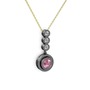 Pembe kuvars ve swarovski 925 ayar siyah rodyum kaplama gümüş kolye (40 cm gümüş rolo zincir)
