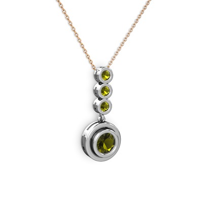 Peridot 18 ayar beyaz altın kolye (40 cm rose altın rolo zincir)