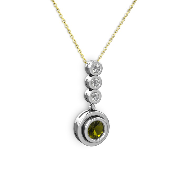 Peridot ve elmas 18 ayar beyaz altın kolye (0.33 karat, 40 cm altın rolo zincir)