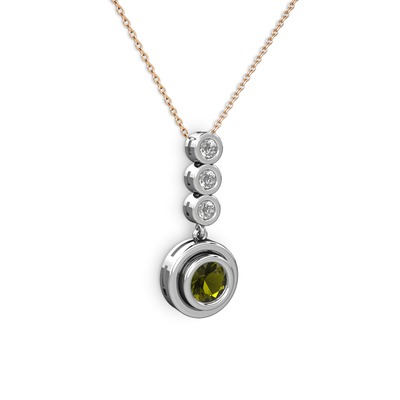 Peridot ve elmas 18 ayar beyaz altın kolye (0.33 karat, 40 cm gümüş rolo zincir)