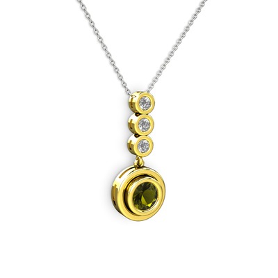 Peridot ve elmas 8 ayar altın kolye (0.33 karat, 40 cm beyaz altın rolo zincir)