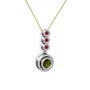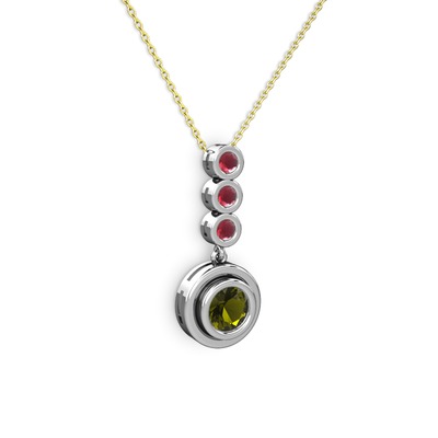 Peridot ve kök yakut 8 ayar beyaz altın kolye (40 cm altın rolo zincir)