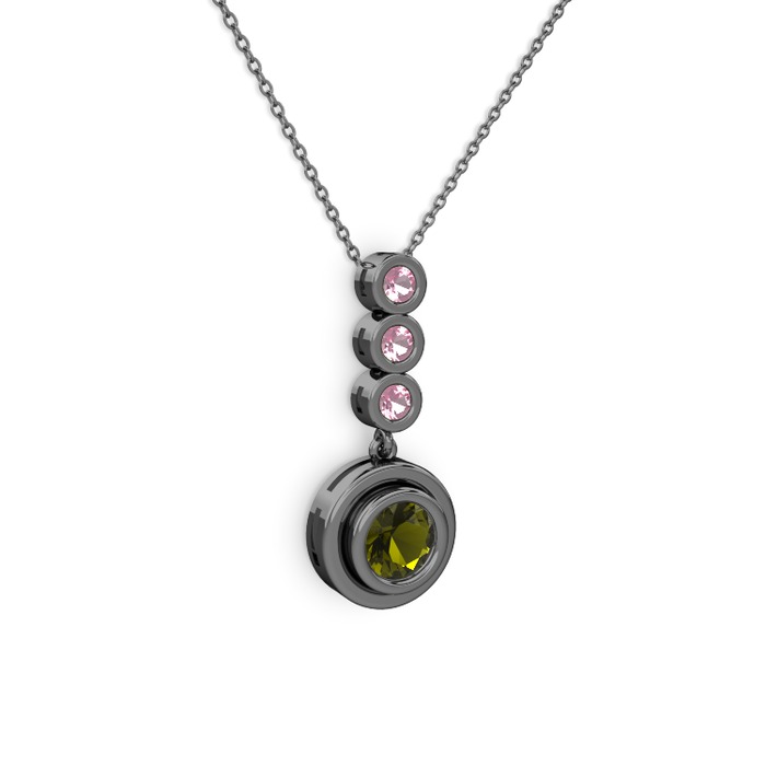 Peridot ve pembe kuvars 925 ayar siyah rodyum kaplama gümüş kolye (40 cm gümüş rolo zincir)
