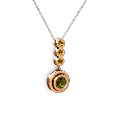 Peridot ve sitrin 14 ayar rose altın kolye (40 cm beyaz altın rolo zincir)