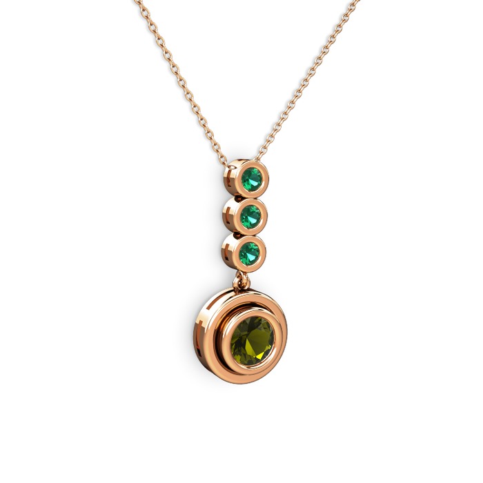 Peridot ve yeşil kuvars 14 ayar rose altın kolye (40 cm gümüş rolo zincir)