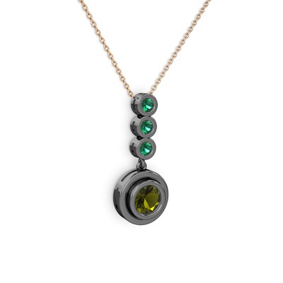 Peridot ve yeşil kuvars 925 ayar siyah rodyum kaplama gümüş kolye (40 cm rose altın rolo zincir)