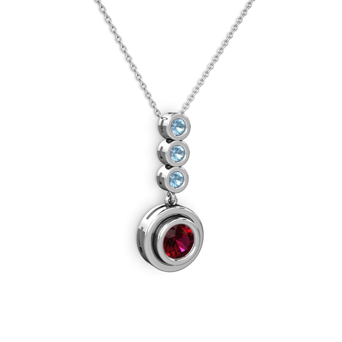 Rodolit garnet ve akuamarin 925 ayar gümüş kolye (40 cm beyaz altın rolo zincir)