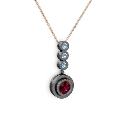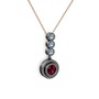 Rodolit garnet ve akuamarin 925 ayar siyah rodyum kaplama gümüş kolye (40 cm gümüş rolo zincir)