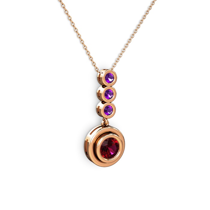 Rodolit garnet ve ametist 18 ayar rose altın kolye (40 cm rose altın rolo zincir)