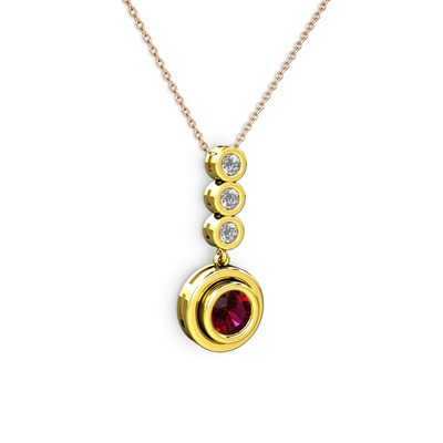 Rodolit garnet ve beyaz zirkon 925 ayar altın kaplama gümüş kolye (40 cm rose altın rolo zincir)