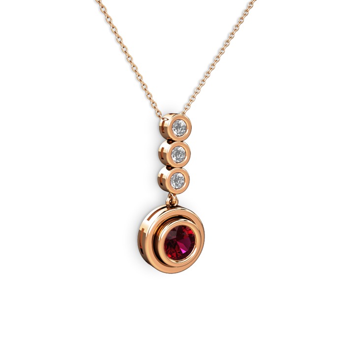 Rodolit garnet ve beyaz zirkon 925 ayar rose altın kaplama gümüş kolye (40 cm rose altın rolo zincir)