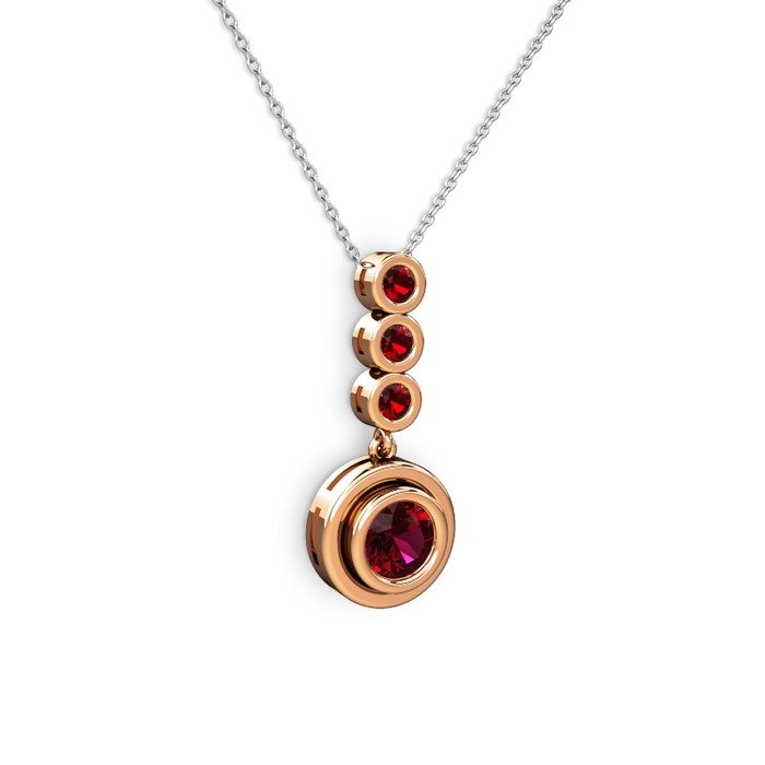Rodolit garnet ve garnet 925 ayar rose altın kaplama gümüş kolye (40 cm beyaz altın rolo zincir)