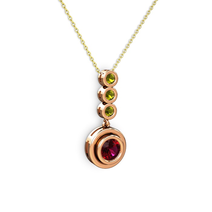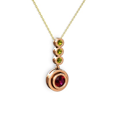 Rodolit garnet ve peridot 8 ayar rose altın kolye (40 cm altın rolo zincir)