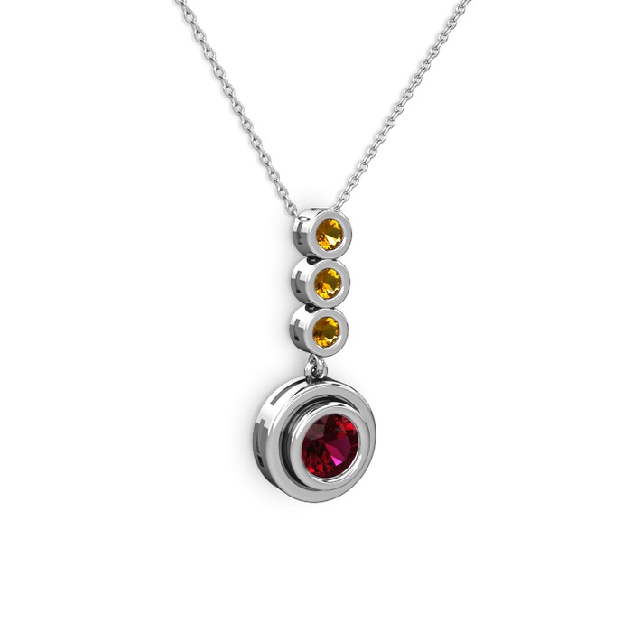 Rodolit garnet ve sitrin 8 ayar beyaz altın kolye (40 cm beyaz altın rolo zincir)