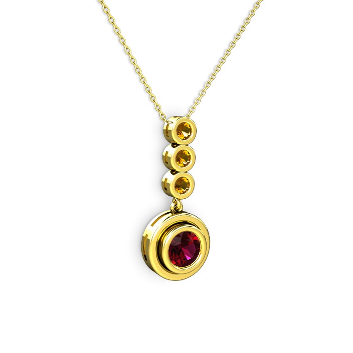 Rodolit garnet ve sitrin 925 ayar altın kaplama gümüş kolye (40 cm gümüş rolo zincir)