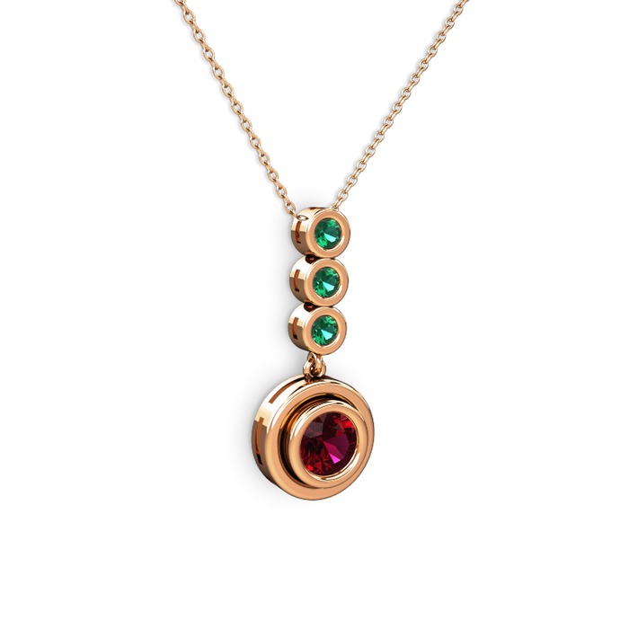 Rodolit garnet ve yeşil kuvars 14 ayar rose altın kolye (40 cm gümüş rolo zincir)