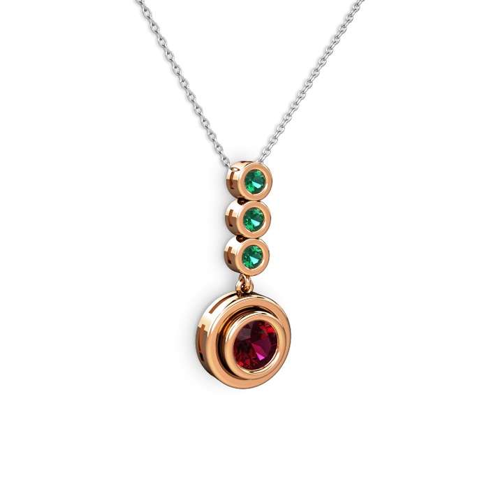 Rodolit garnet ve yeşil kuvars 925 ayar rose altın kaplama gümüş kolye (40 cm beyaz altın rolo zincir)