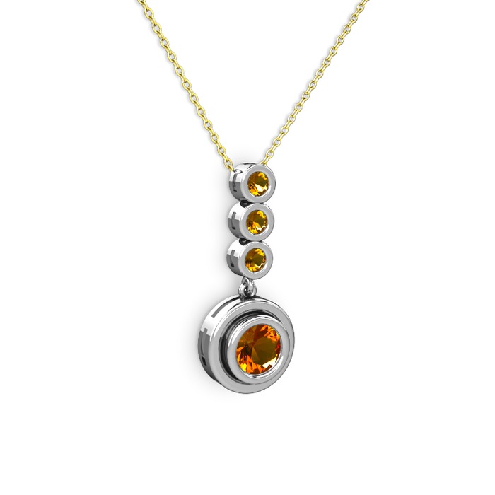 Sitrin 18 ayar beyaz altın kolye (40 cm gümüş rolo zincir)
