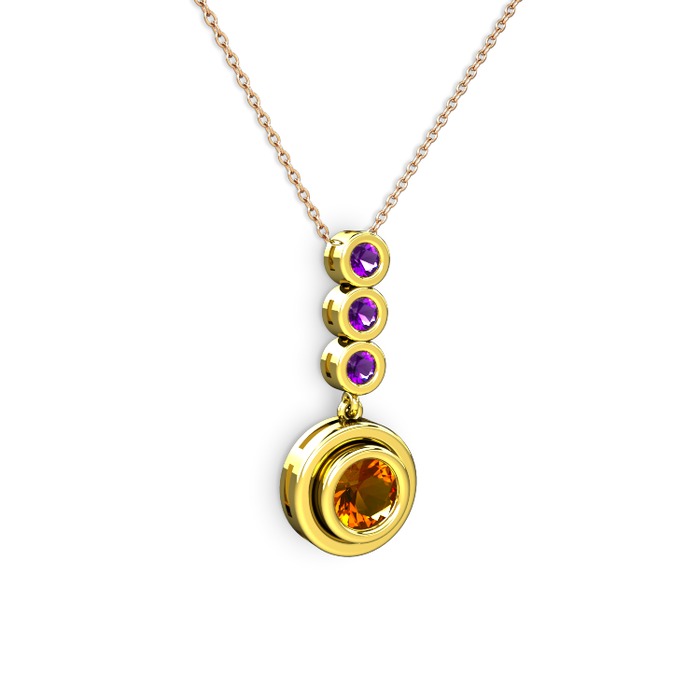 Sitrin ve ametist 18 ayar altın kolye (40 cm rose altın rolo zincir)