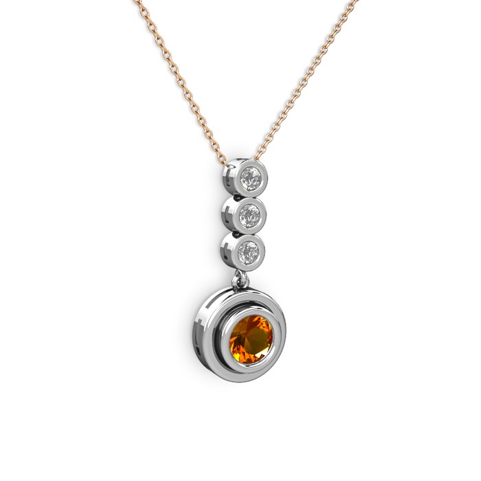 Sitrin ve elmas 18 ayar beyaz altın kolye (0.33 karat, 40 cm gümüş rolo zincir)