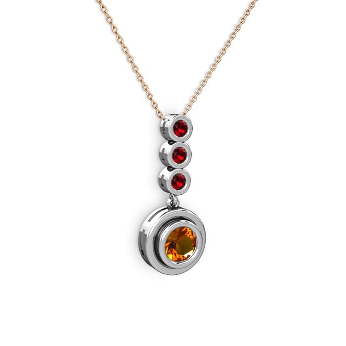 Sitrin ve garnet 925 ayar gümüş kolye (40 cm rose altın rolo zincir)