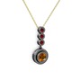 Sitrin ve garnet 925 ayar siyah rodyum kaplama gümüş kolye (40 cm altın rolo zincir)