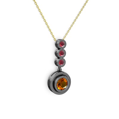 Sitrin ve kök yakut 925 ayar siyah rodyum kaplama gümüş kolye (40 cm altın rolo zincir)