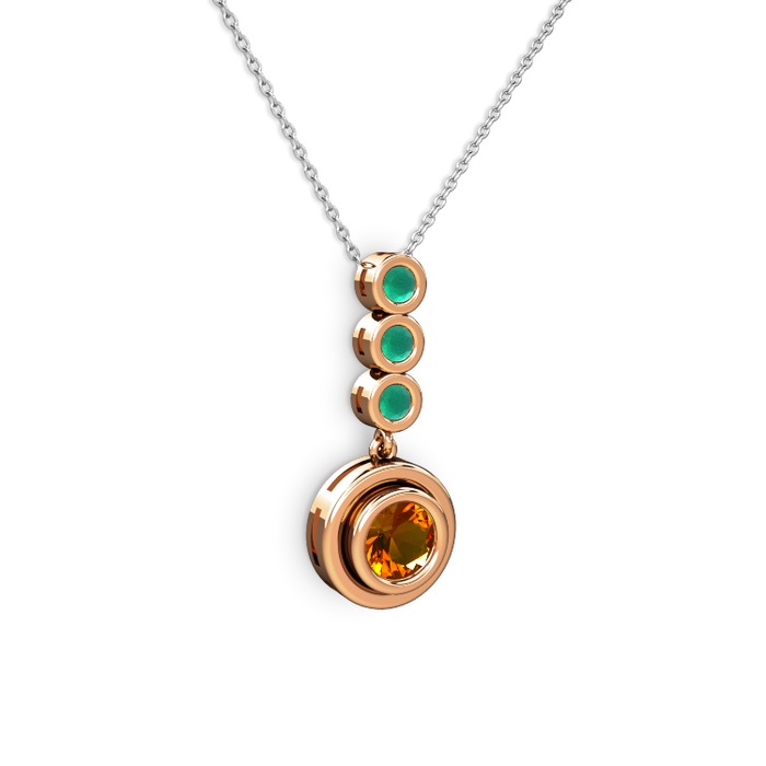 Sitrin ve kök zümrüt 14 ayar rose altın kolye (40 cm beyaz altın rolo zincir)