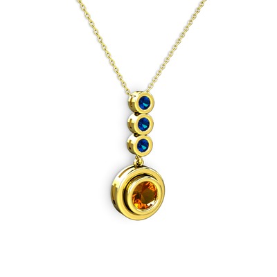 Sitrin ve lab safir 18 ayar altın kolye (40 cm altın rolo zincir)
