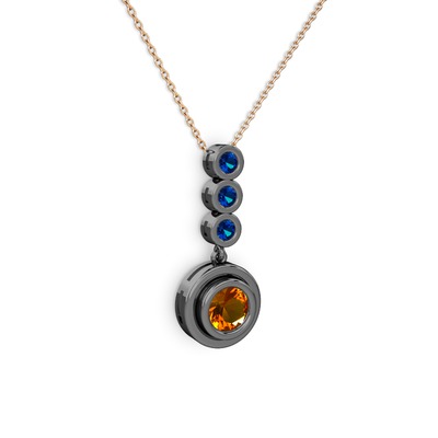 Sitrin ve lab safir 925 ayar siyah rodyum kaplama gümüş kolye (40 cm rose altın rolo zincir)