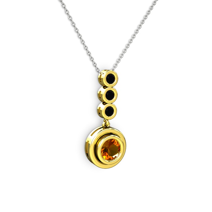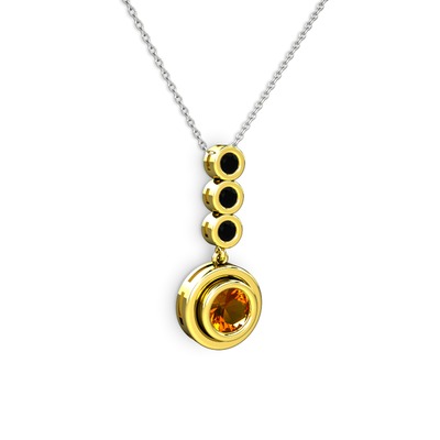 Sitrin ve siyah zirkon 18 ayar altın kolye (40 cm gümüş rolo zincir)