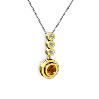 Sitrin ve swarovski 14 ayar altın kolye (40 cm gümüş rolo zincir)