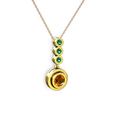 Sitrin ve yeşil kuvars 14 ayar altın kolye (40 cm gümüş rolo zincir)