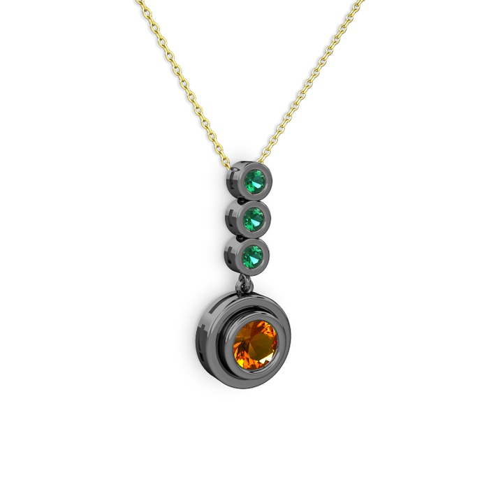 Sitrin ve yeşil kuvars 925 ayar siyah rodyum kaplama gümüş kolye (40 cm gümüş rolo zincir)