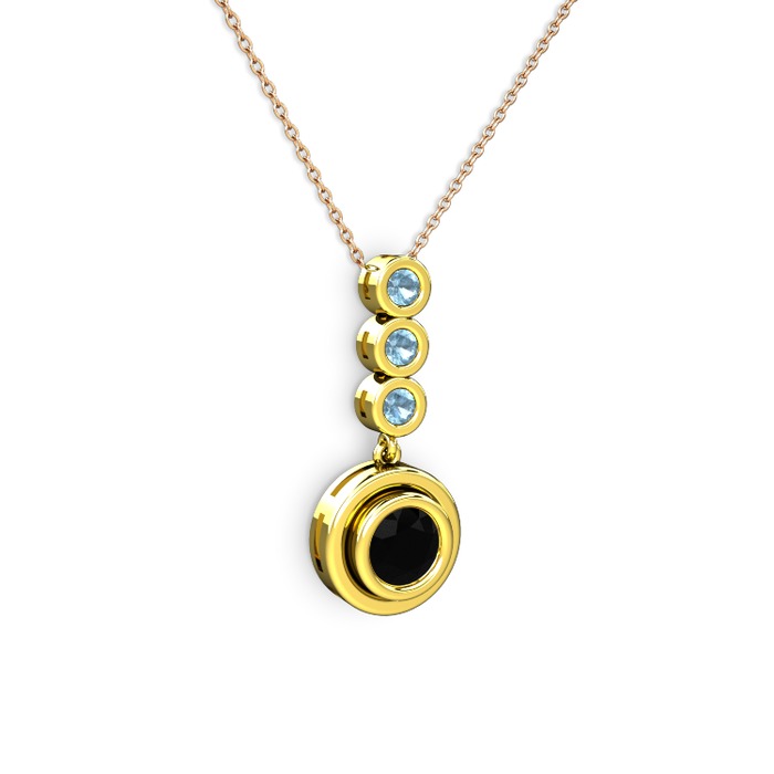 Siyah zirkon ve akuamarin 14 ayar altın kolye (40 cm rose altın rolo zincir)