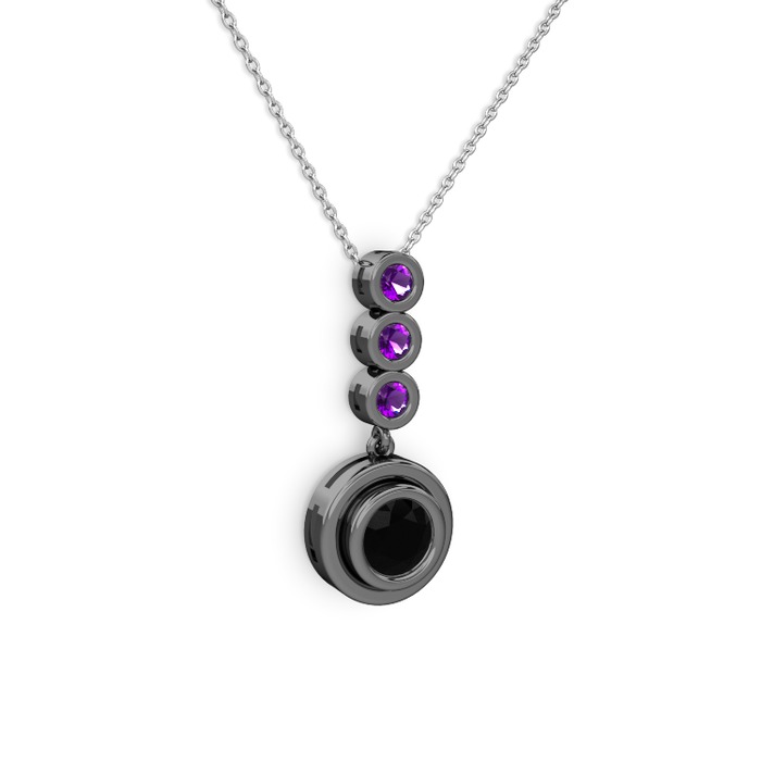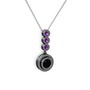 Siyah zirkon ve ametist 925 ayar siyah rodyum kaplama gümüş kolye (40 cm beyaz altın rolo zincir)
