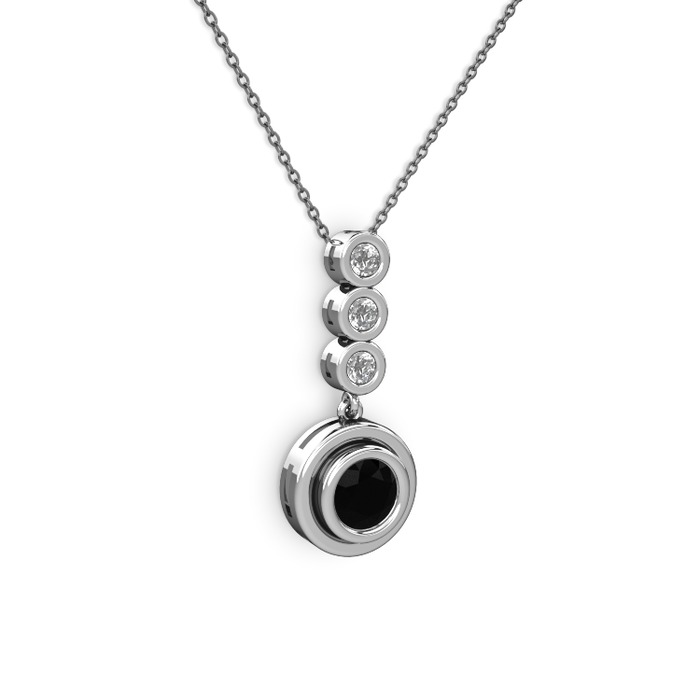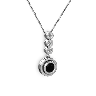Siyah zirkon ve beyaz zirkon 14 ayar beyaz altın kolye (40 cm gümüş rolo zincir)