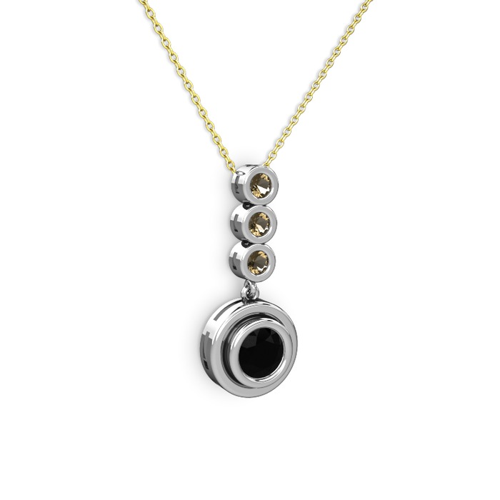 Siyah zirkon ve dumanlı kuvars 18 ayar beyaz altın kolye (40 cm altın rolo zincir)