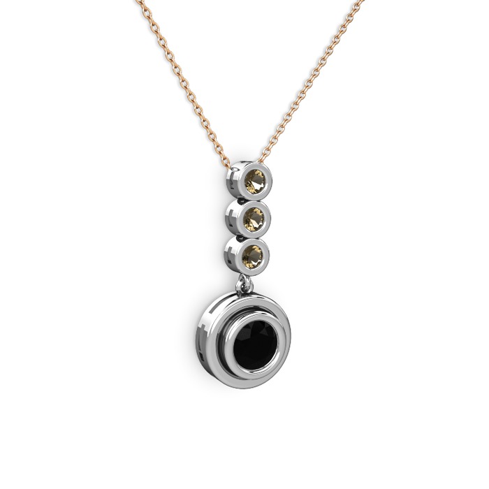 Siyah zirkon ve dumanlı kuvars 18 ayar beyaz altın kolye (40 cm gümüş rolo zincir)