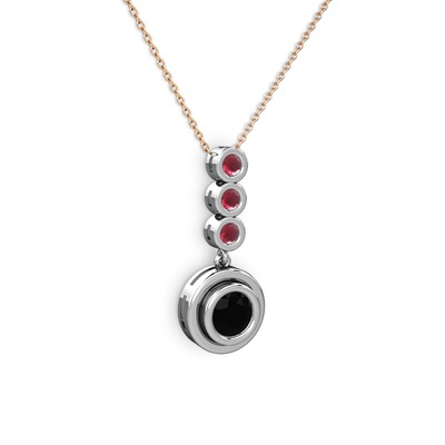 Siyah zirkon ve kök yakut 18 ayar beyaz altın kolye (40 cm rose altın rolo zincir)