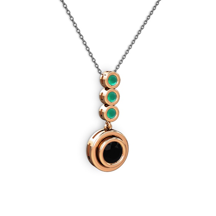 Siyah zirkon ve kök zümrüt 925 ayar rose altın kaplama gümüş kolye (40 cm gümüş rolo zincir)