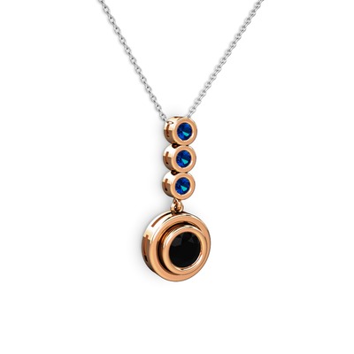 Siyah zirkon ve lab safir 18 ayar rose altın kolye (40 cm beyaz altın rolo zincir)