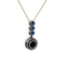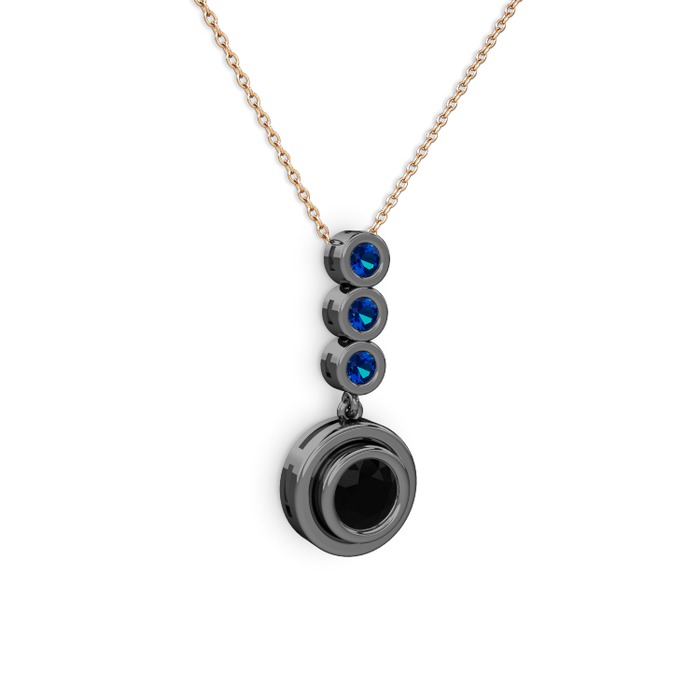 Siyah zirkon ve lab safir 925 ayar siyah rodyum kaplama gümüş kolye (40 cm rose altın rolo zincir)