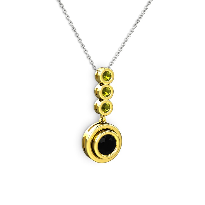 Siyah zirkon ve peridot 14 ayar altın kolye (40 cm gümüş rolo zincir)