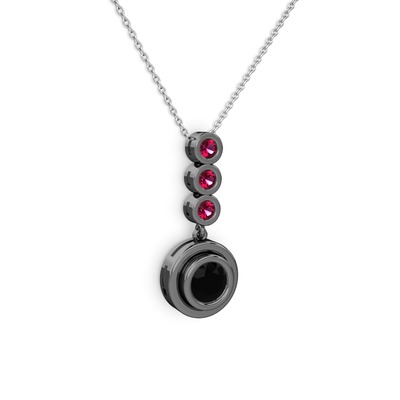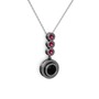 Siyah zirkon ve rodolit garnet 925 ayar siyah rodyum kaplama gümüş kolye (40 cm beyaz altın rolo zincir)