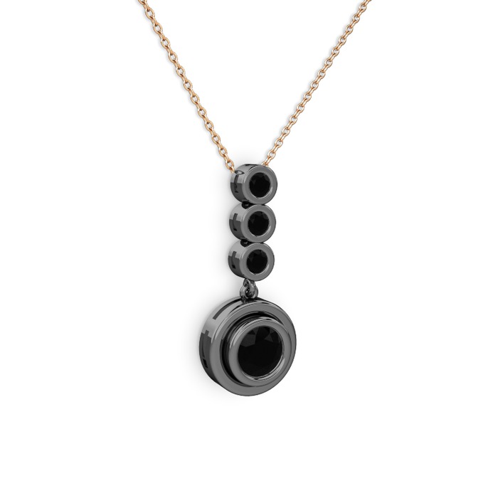 Siyah zirkon 925 ayar siyah rodyum kaplama gümüş kolye (40 cm rose altın rolo zincir)
