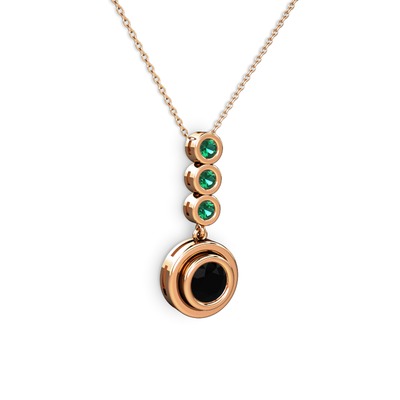 Siyah zirkon ve yeşil kuvars 925 ayar rose altın kaplama gümüş kolye (40 cm rose altın rolo zincir)