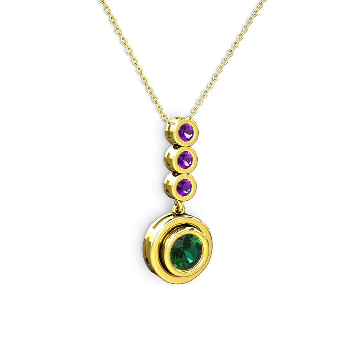 Yeşil kuvars ve ametist 18 ayar altın kolye (40 cm altın rolo zincir)