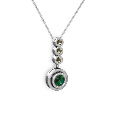 Yeşil kuvars ve dumanlı kuvars 14 ayar beyaz altın kolye (40 cm beyaz altın rolo zincir)